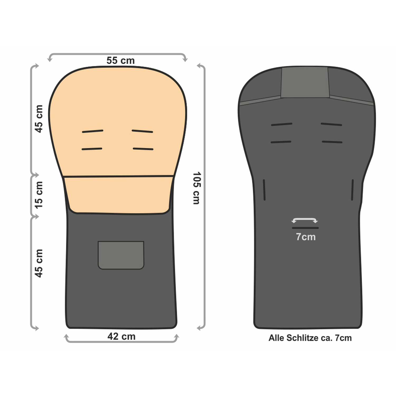 • 6 SCHLITZE | Inklusive Frontschlitz, flexible Befestigung, sicherer Halt im Kinderwagen, Buggy oder Schlitten garantiert.