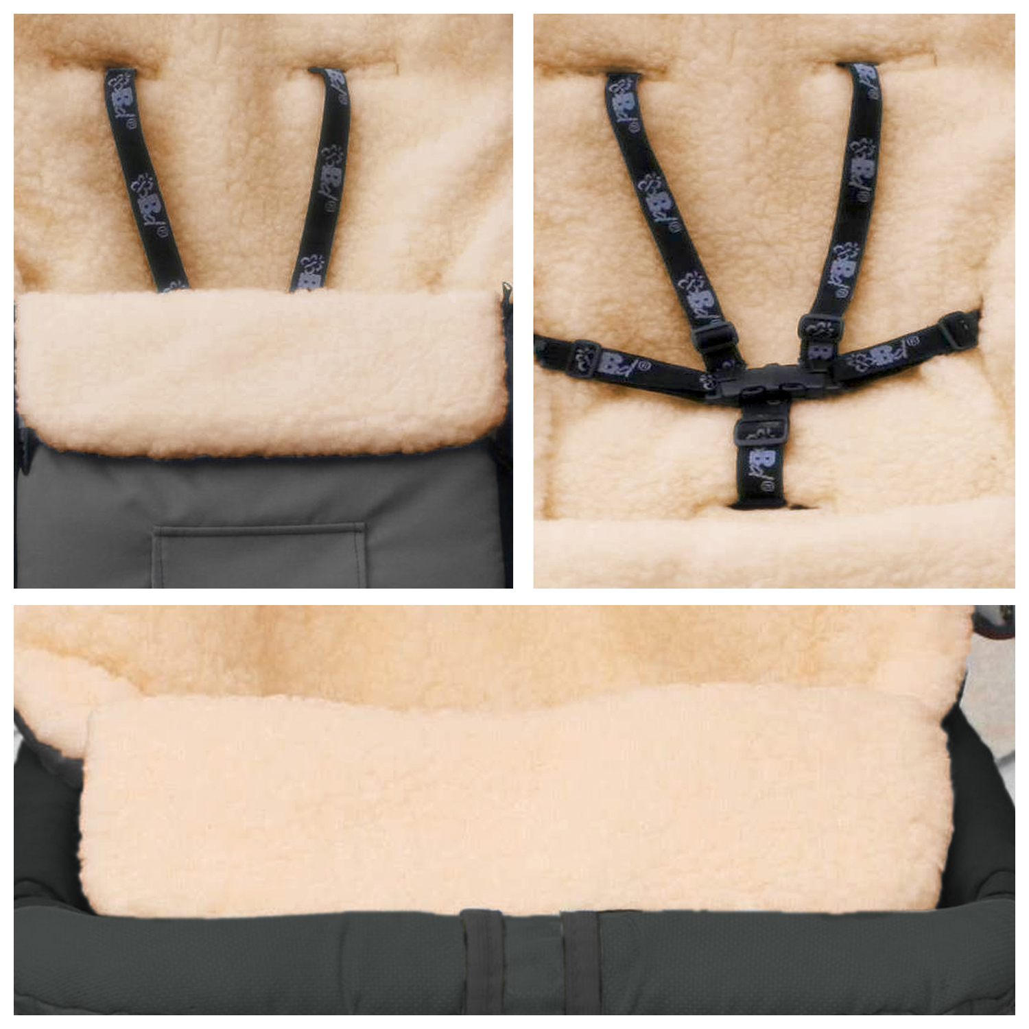 Ihr Kind wird sich sehr wohl und sicher fühlen. Die vordere Lasche hochgeklappt und das Kopfteil zugezogen, schützt der Fußsack Ihr Kind vor Schnee, Regen, Wind und Kälte, denn es wird immer muckelig warm bleiben. „Superwash-Supertherm“ Die spezielle Wollemischung von Lamm- und Acrylwolle hat ein hervorragendes Warmhaltevermögen (Lammwolle) und verfilzt nicht mehr beim Waschen in der Waschmaschine (Acrylwolle). Zudem ist diese Wollkombination super pflegeleicht, Schmutz läßt sich sehr schnell entfernen. Die starke Kräuselung der Fasern ermöglicht die Bildung von Luftpolstern, die sehr gut isolieren und das Futter widerstandsfähiger gegen Feuchtigkeit macht (trocknet schnell). Die eingearbeiteten 6 Schlitze (einer davon vorne) sind zur Befestigung am Kinderwagen, Buggy, Schlitten etc. vorgesehen und sorgen für fortwährende Sicherheit. Während der Übergangszeit können Sie die obere Decke durch den Reißverschluss öffnen, damit es Ihrem Schatz an warmen Tagen luftig ist. Schlitze für 5-Punkt-Sicherheitsgurte für Kinderwagen, Buggy, Schlitten und Co. Reißverschluss, der sich komplett öffnen läßt – somit entsteht eine große Krabbeldecke oder 2 kleinere praktische Decken/Wickelunterlagen. Bestens für den Übergang geeignet.